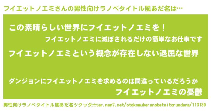 | ヘコむあだ名 | 『フイエットノエミ(笑)』『フイもー』 |