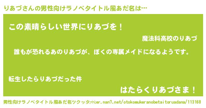 | 胡散臭い通販商品みたいなあだ名 | 『来世でも幸せになれる健康食品…その名も「りあづ」』 |