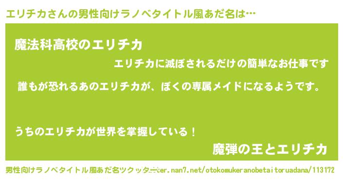 | 意味不明あだ名 | 『永久保存エリチカ』『自称エリチカ』 |