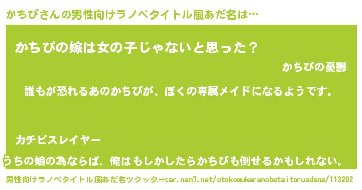 | 女子向けラノベタイトル風あだ名 | 『異世界でカフェかちぴを開店しました。』 |
