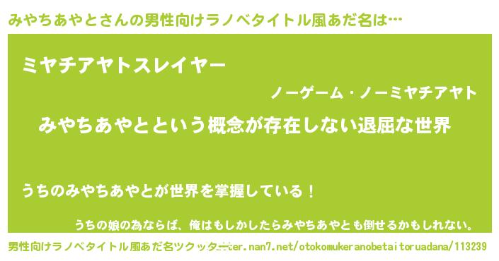| 胡散臭い通販商品みたいなあだ名 | 『絶対に幸福をもたらす招き猫…その名も「みやちあやと」』 |