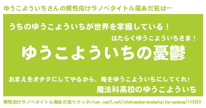 | 女子向けラノベタイトル風あだ名 | 『(仮)ゆうこよういちのやんごとなき事情』 |