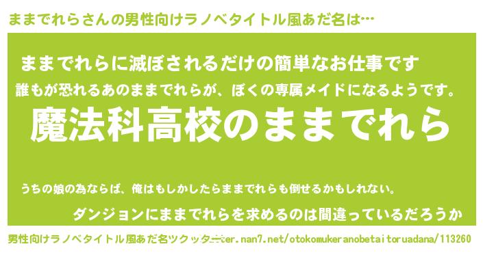 | 女子向けラノベタイトル風あだ名 | 『ままでれらなんてお断りですっ。』 |