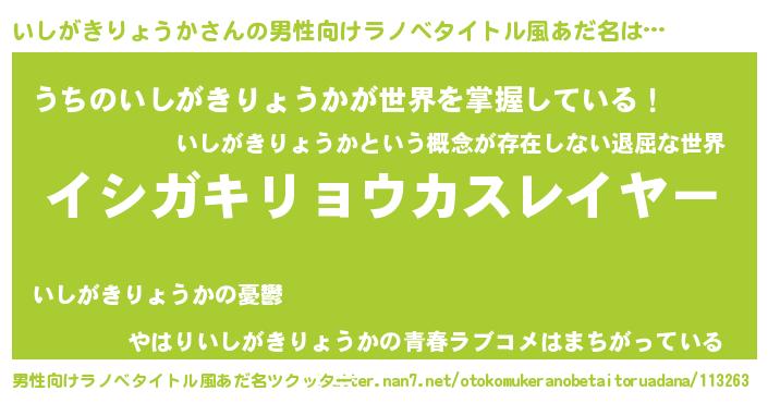 | ヒーロー風カッコイイあだ名 | 『ウルトラいしがきりょうかマン』 |