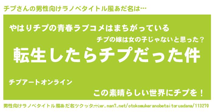 | ヘコむあだ名 | 『なまこ酢』『チプっぺ』『チプもー』 |