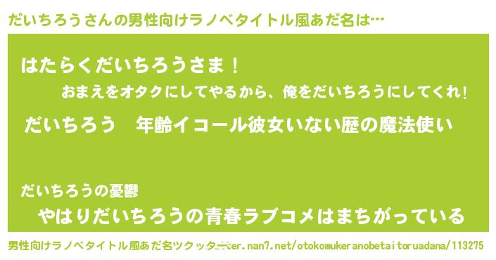 | 女子向けラノベタイトル風あだ名 | 『だいちろうの玉の輿計画!』 |