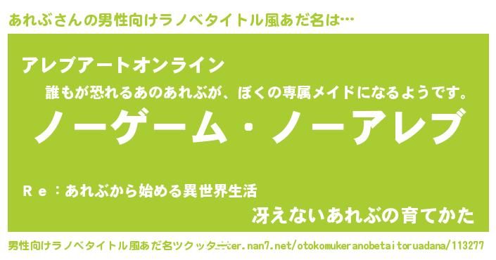 | 女子向けラノベタイトル風あだ名 | 『あれぶ恋絵巻』『あれぶの契約王妃』 |