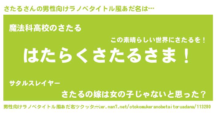 | 意味不明あだ名 | 『自称さたる』『とにかく怪しいさたる』 |
