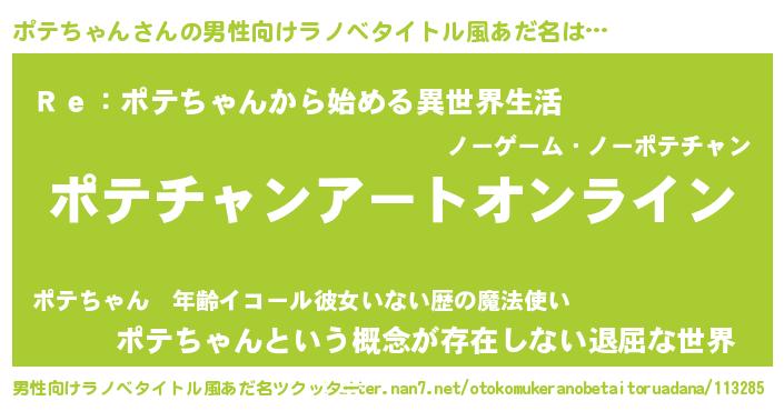 | 女子向けラノベタイトル風あだ名 | 『ポテちゃん姫と円卓の騎士』 |