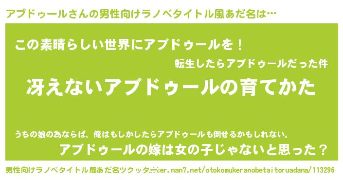 | 意味不明あだ名 | 『住所不定無職アブドゥール(12歳)』 |