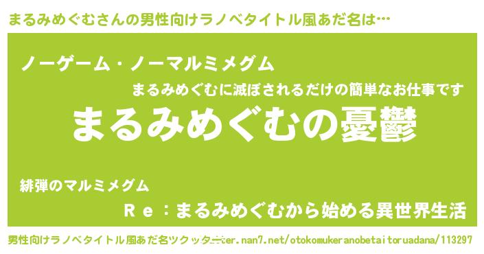 | ヘコむあだ名 | 『まるもー』『まるみめぐむ(震え声)』 |