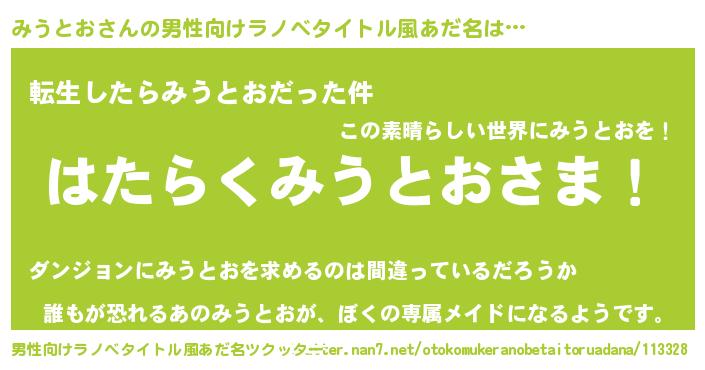 | ヘコむあだ名 | 『みうとお(小並感)』『みうっ子』 |