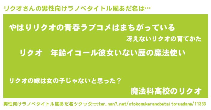 | 女子向けラノベタイトル風あだ名 | 『リクオの玉の輿計画!』 |