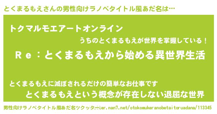 | 意味不明あだ名 | 『自称とくまるもえ』 |