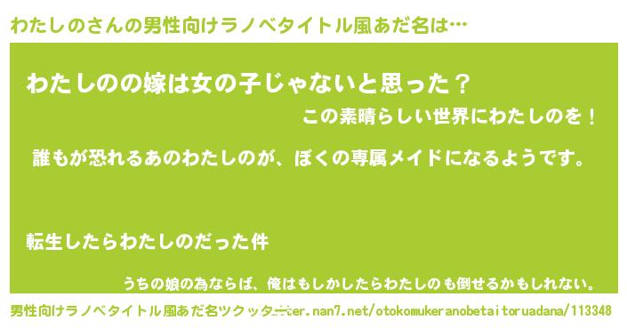 | 女子向けラノベタイトル風あだ名 | 『わたしのの契約王妃』 |
