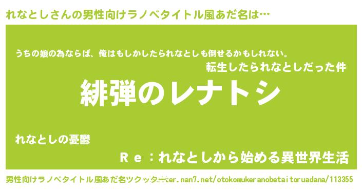 | ヒーロー風カッコイイあだ名 | 『ウルトラれなとしマン』『ネオレナトシ』 |