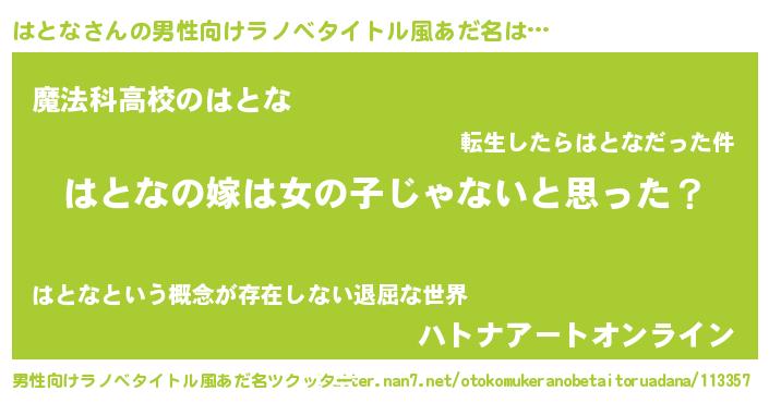 | 意味不明あだ名 | 『とにかく怪しいはとな』『自称はとな』 |