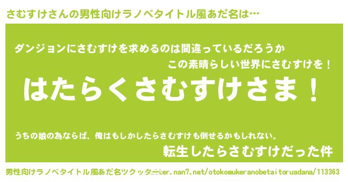 | 意味不明あだ名 | 『とにかく怪しいさむすけ』 |