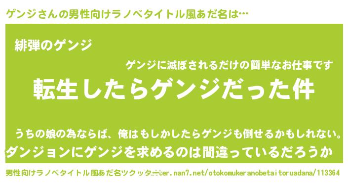 | ヒーロー風カッコイイあだ名 | 『魔戒騎士ゲン』『ウルトラゲンジマン』 |