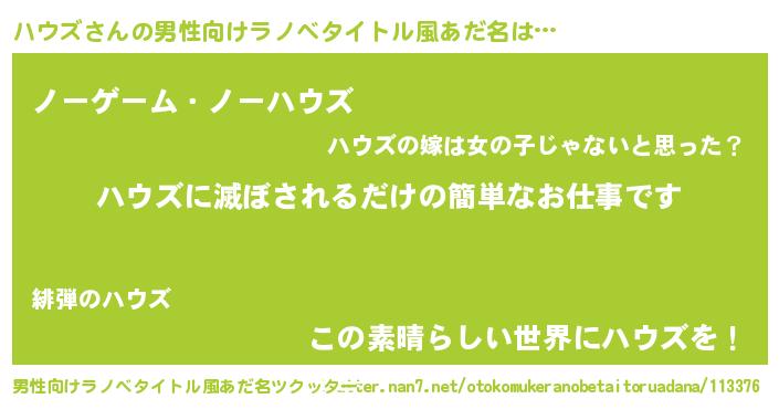 | ヒーロー風カッコイイあだ名 | 『慈愛の使者ハウズ』『仮面ハウダー』 |