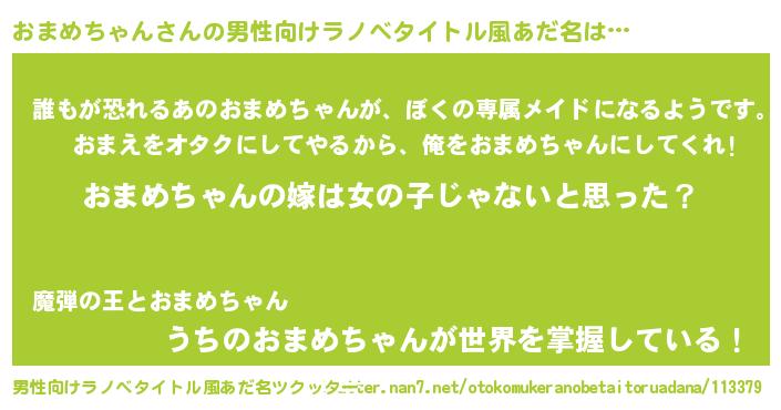| 胡散臭い通販商品みたいなあだ名 | 『全米が絶賛したサプリメント…その名も「おまめちゃん」』 |