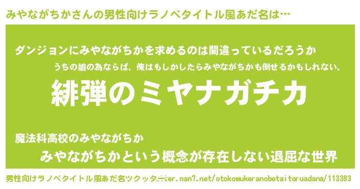 みやながちかさんの男性向けラノベタイトル風あだ名をツクッター!