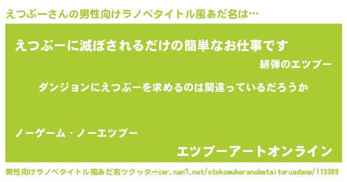 | 女子向けラノベタイトル風あだ名 | 『えつぶーは平凡を望む』 |