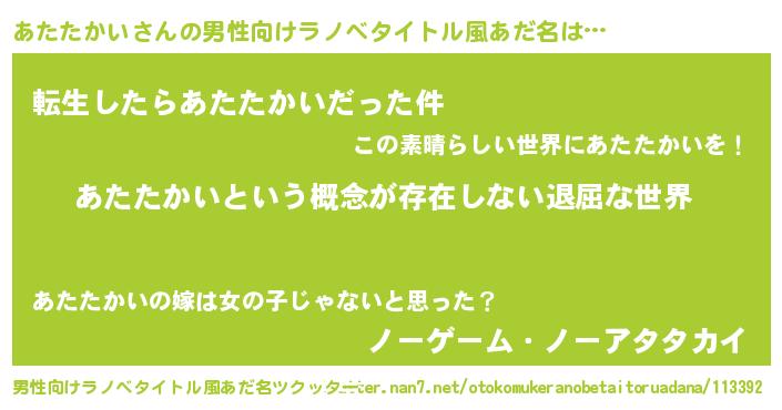 | 胡散臭い通販商品みたいなあだ名 | 『来世でも幸せになれる健康食品…その名も「あたたかい」』 |