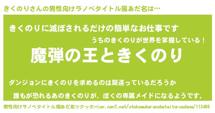 | 女子向けラノベタイトル風あだ名 | 『きくのりが死なない童話 林檎のきくのりの診療簿』 |