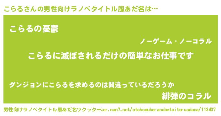 | 胡散臭い通販商品みたいなあだ名 | 『億万長者になれる水晶球…その名も「こらる」』 |