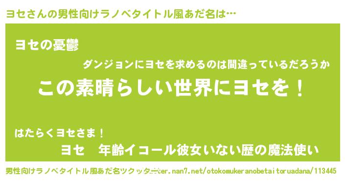 | 胡散臭い通販商品みたいなあだ名 | 『あなたにだけ特別に提供する世界で10本だけ現存している希少なブランデー…その名も「ヨセ」』 |