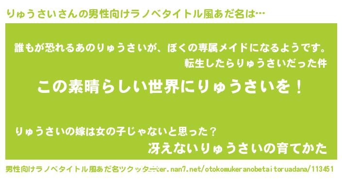 | ヘコむあだ名 | 『りゅうさい(笑)』『りゅを』 |