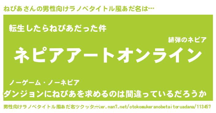 | 女子向けラノベタイトル風あだ名 | 『ねぴあ姫と円卓の騎士』『ねぴあ恋絵巻』 |