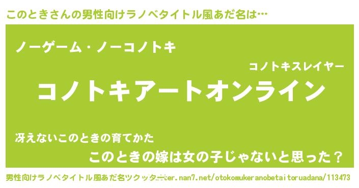 | ヒーロー風カッコイイあだ名 | 『スーパーコノトキ』『愛の使者このとき』 |