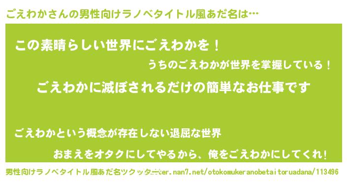 ごえわかさんの男性向けラノベタイトル風あだ名をツクッター!