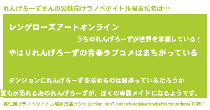 | 女子向けラノベタイトル風あだ名 | 『れんげろーず伯爵の花嫁』 |