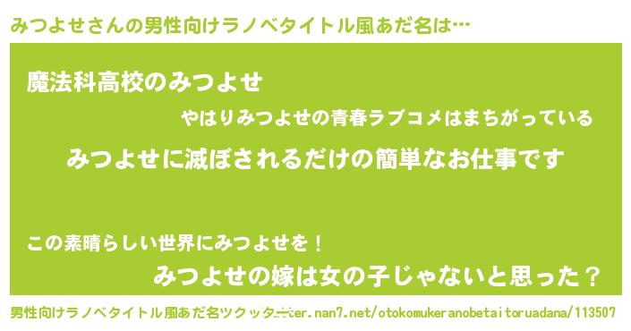 | ヒーロー風カッコイイあだ名 | 『サイバー戦士ミツヨセ』『幻影騎士ミツ』 |