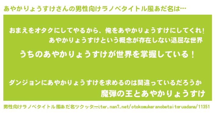| ヘコむあだ名 | 『あやかりょうすけ(震え声)』『あや太郎』 |