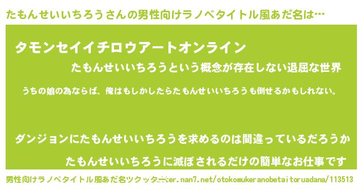 | ファンタジー風あだ名 | 『エターナルタモンセイイチロウー』 |