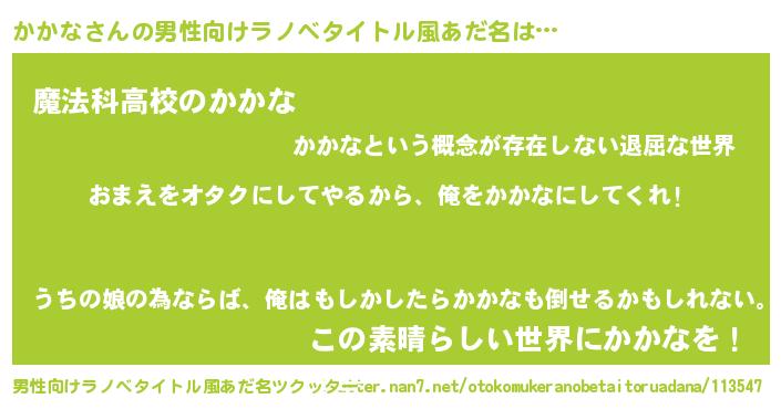 | 女子向けラノベタイトル風あだ名 | 『かかな恋絵巻』『かかなの婚約者』 |