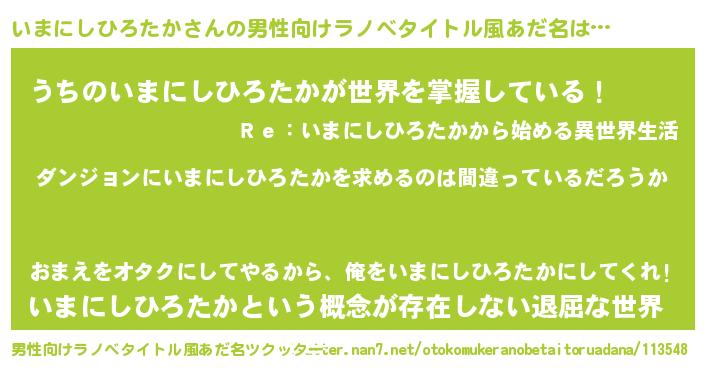 | 女子向けラノベタイトル風あだ名 | 『いまにしひろたかは平凡を望む』 |