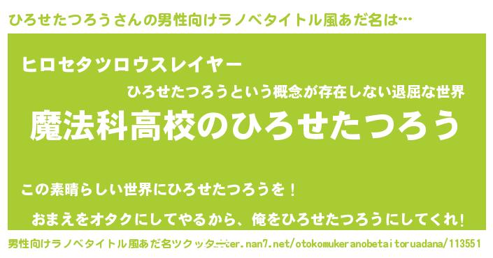 | 女子向けラノベタイトル風あだ名 | 『ひろせたつろうアンティーク』 |