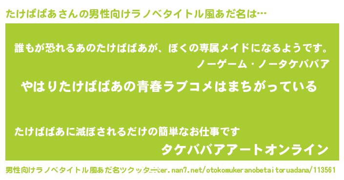 | 意味不明あだ名 | 『たけばばあフォーエバー』 |