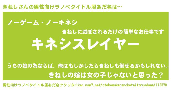 | 女子向けラノベタイトル風あだ名 | 『婚約破棄系悪役きねしに転生したので、保身に走りました。』 |