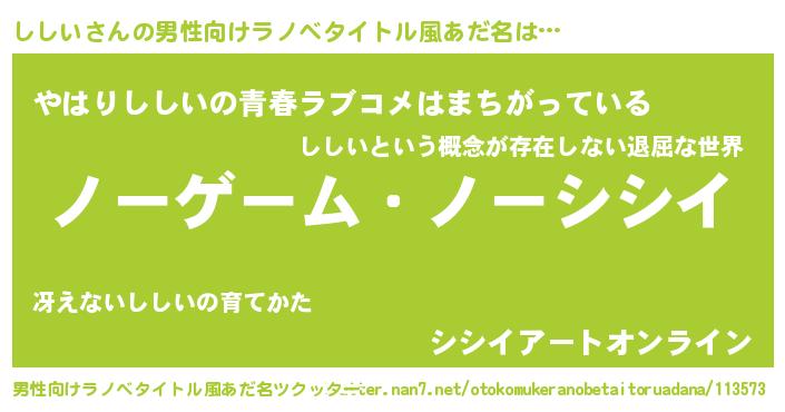 | ヒーロー風カッコイイあだ名 | 『慈愛の使者ししい』『スーパーシシイ』 |