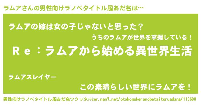 | 意味不明あだ名 | 『自称ラムア』『とにかく怪しいラムア』 |