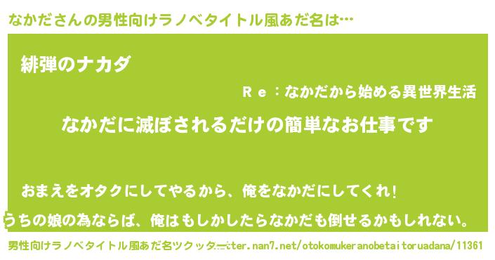 | ファンタジー風あだ名 | 『カークナカラー』『エターナルナカダー』 |