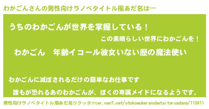 | 胡散臭い通販商品みたいなあだ名 | 『前代未聞の健康食品…その名も「わかごん」』 |