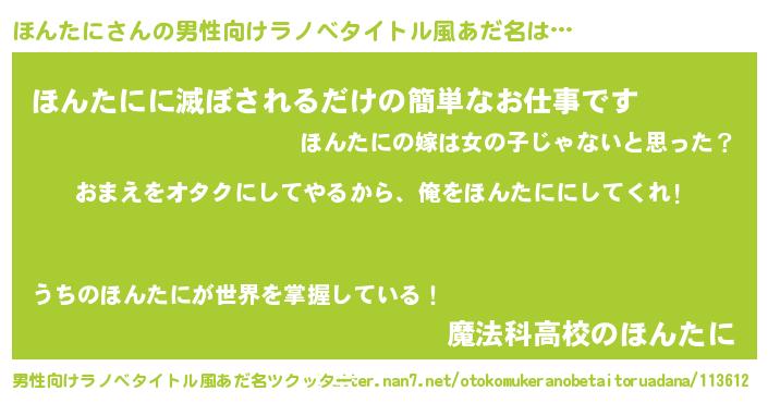 | 女子向けラノベタイトル風あだ名 | 『ほんたに夫妻のなれそめ』 |