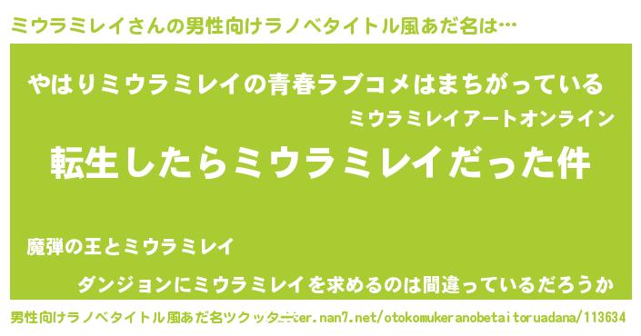 | ヒーロー風カッコイイあだ名 | 『ウルトラミウラミレイマン』 |